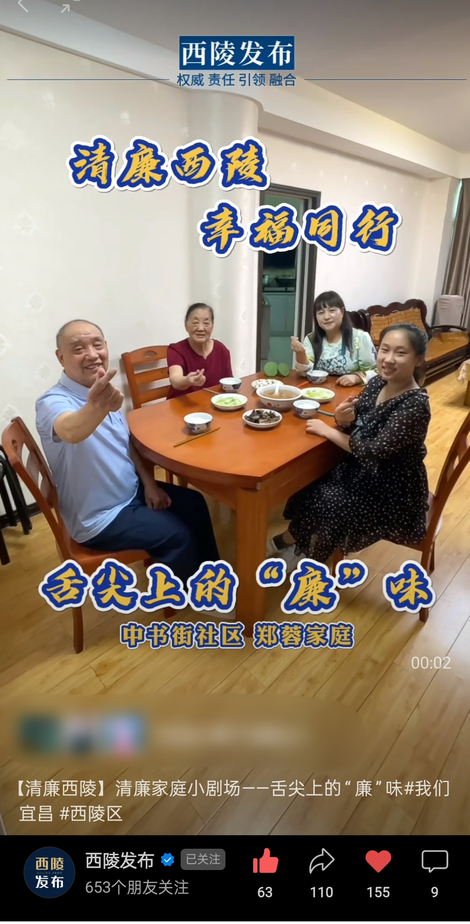 创新开辟“清廉西陵”小剧场,目前已组织拍摄并发布四期短视频:清廉医院小剧场《清廉西陵》、清廉家庭小剧场《舌尖上的廉味》、清廉村居小剧场《钢镚儿的初心》以及清廉学校小剧场,将清廉元素植入居民的日常生活,视频浏览总量达20W+。