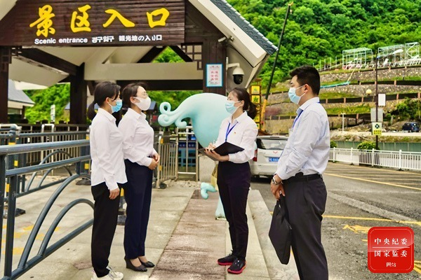湖北省兴山县纪委监委紧盯节日期间易发的违规吃喝送礼、公款旅游等“四风”问题,组织工作专班靠前监督,深入各大景区、酒店等重点场所全面排查公款旅游、公款送礼等隐形变异“四风”问题线索。图为该县纪检监察干部来到辖区内高岚景区了解相关情况。(湖北省兴山县纪委监委 万晶晶 摄)