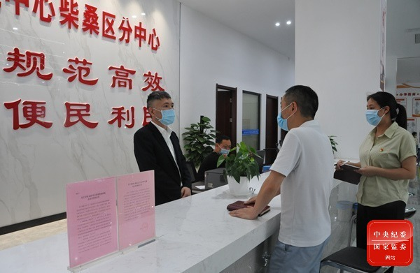 端午节前夕,江西省九江市柴桑区纪委监委聚焦干部作风建设,加大对优化营商环境和窗口单位作风建设情况的监督检查力度,督促窗口工作人员恪尽职守,确保廉洁过节。图为该区纪委监委在政务服务中心开展“四风”专项监督检查。(江西省九江市柴桑区纪委监委 宋杰 摄)