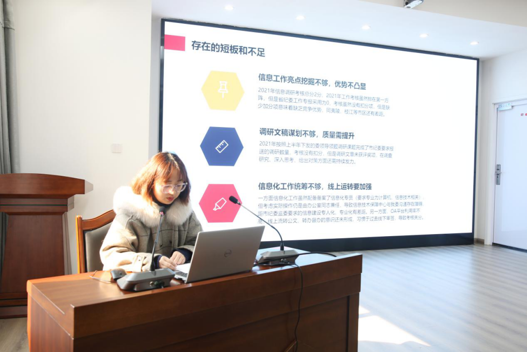 图为远安县监委监委办公室牵头负责人在2022年全县纪检监察工作推进会述职现场