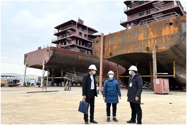 图为该市纪检监察干部优化营商环境工作专班在七星台船舶工业园随机走访