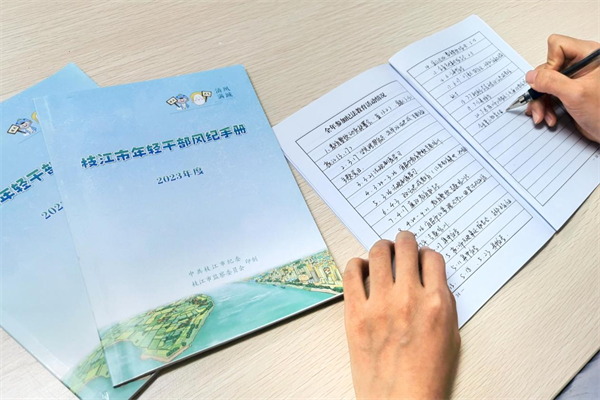 利用碎片时间,用好“微载体”。通过常态化分享违纪违法典型案例链接、制作廉政海报电脑桌面、编印违纪违法典型案例“口袋书”等方式,引导党员干部利用碎片时间“掌上”学廉、“指尖”学廉,在集中教育活动之外保持教育温度不降、力度不减。图为该市为全市年轻干部发放《风纪手册》,党员干部正在填写全年参加纪法教育活动情况。