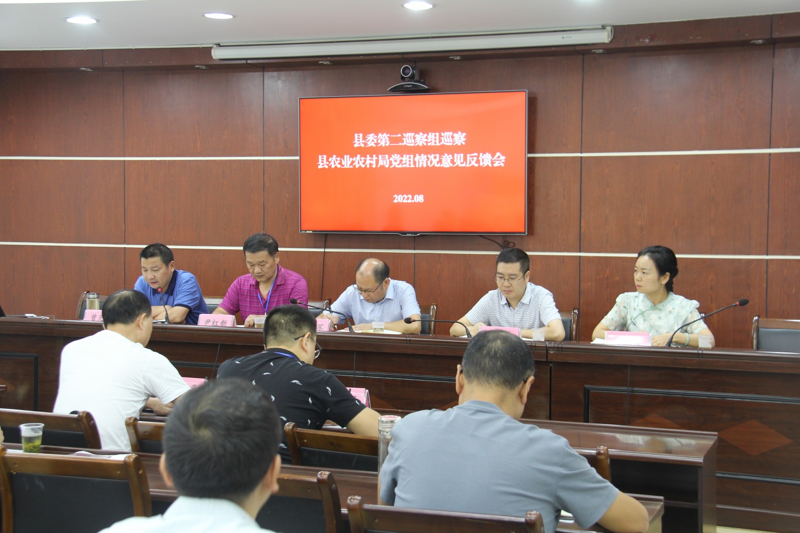 县委巡察办副主任周立夏、县委第二巡察组副组长周汪平,县委组织部干监股股长郭安,县农业农村局领导班子成员、全体干部职工参加会议。