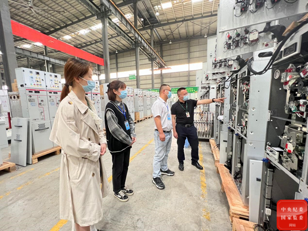 福建省福清市纪委监委聚焦培育扶持“专精特新”惠企政策落实、涉企服务优化等方面走访调研,找准影响营商环境的痛点、难点、堵点问题,跟进监督,保障惠企政策和改革措施有效落地。图为该市纪检监察干部前往某电气设备公司了解惠企政策、服务落实情况。(福建省福清市纪委监委 高晶晶 摄)