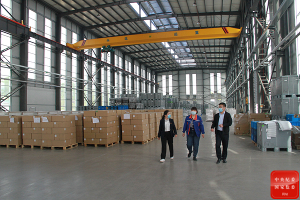 山东省昌乐县建立“专精特新”企业培训库,开展一企一策滴灌式服务,量身打造申报绿色通道、政策优惠支持等精细化服务方案,助力企业拔节成长。图为该县纪检监察干部走访当地一家国家级“专精特新小巨人”企业,了解政策落地、资金落袋情况。(山东省昌乐县纪委监委 于雪琦 摄)