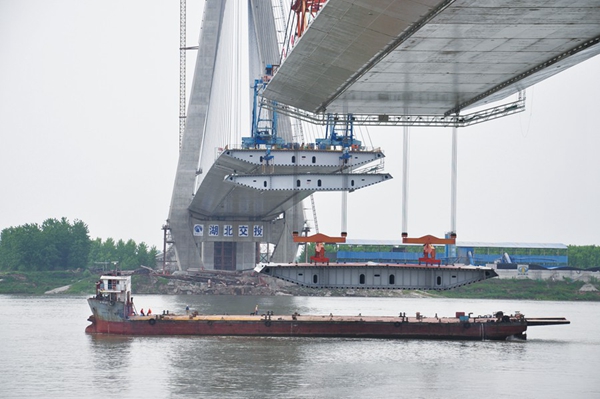 在湖北省纪委监委督导下,湖北交投集团堵塞制度漏洞,优化工程分包机制,工程类项目采购成本明显下降。图为近日该集团嘉鱼长江大桥工程正在有序施工。周漓 摄