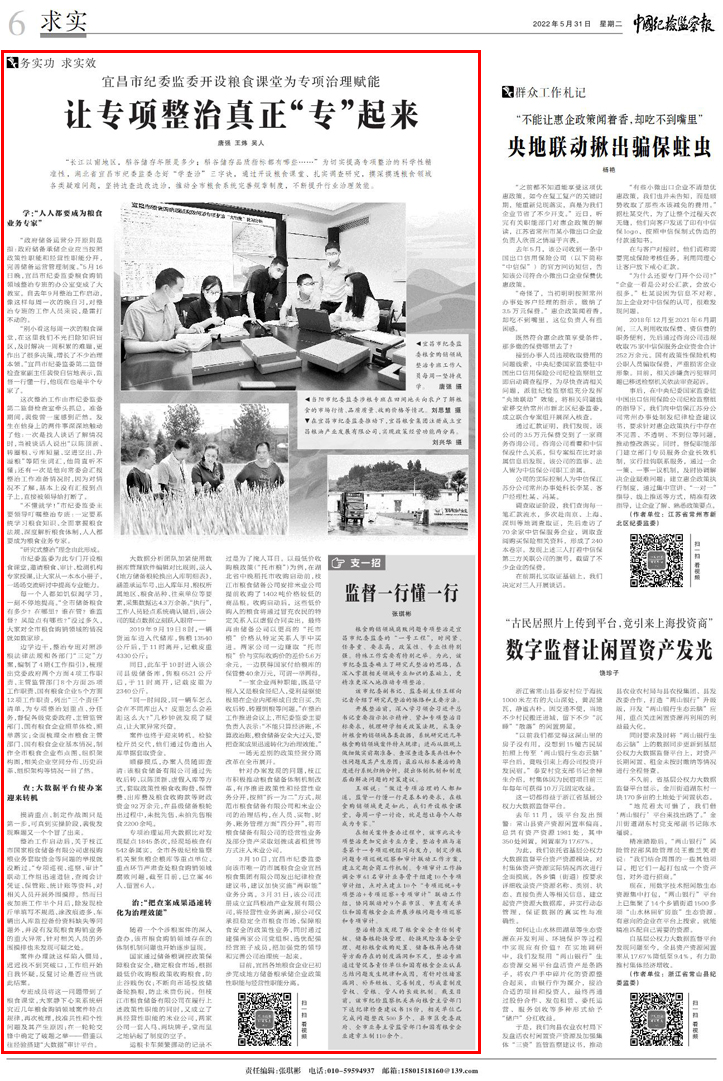“别小看这每周一次的粮食课堂,在这里我们不光扫除知识盲区,及时解决一周积累的难题,更作出了很多决策,增长了不少治理本领。”宜昌市纪委监委第二监督检查室副主任裴俊自信地表示,监督一行懂一行,他现在也是半个专家了。