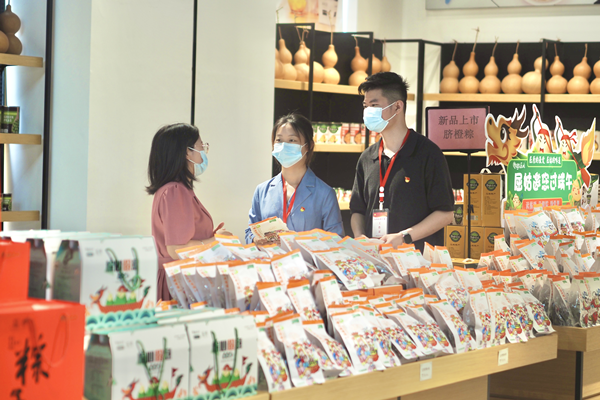 秭归县纪委监委坚持早打“预防针”,定好“规矩阀”,采取实地检查、抽查账务账目等方式,随机挑选特产门店,重点检查公款购买、违规收送端午节礼等“四风”问题。图为该县纪委监委干部在屈姑食品经销店了解相关问题线索。