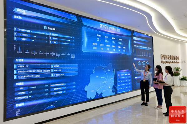 杭州市临平区纪委监委强化“室组企地”协作机制,借助科技力量和大数据资源,着力拓宽发现问题线索的渠道,加强预警研判,专项整治涉企服务中的腐败问题和不正之风,助力优化营商环境。图为临平区纪检监察干部赴区一站式企业服务中心,了解惠企政策兑付等工作落实情况。(浙江省杭州市临平区纪委监委供 周颖 摄)