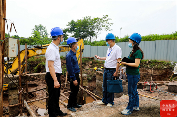 四川省泸县纪委监委紧盯文物保护主体责任落实、有关项目审批、专项资金使用等监督重点,推动文物保护责任落地落实。图为该县纪检监察干部在全国重点文物保护单位太伏镇伏龙村玉带龙桥修复现场了解相关情况。(四川省泸县纪委监委 吴威 摄)