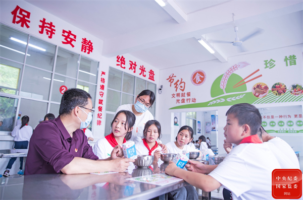 重庆市酉阳土家族苗族自治县纪委监委开展营养午餐政策落实专项监督检查,组织力量深入学校,面对面收集情况,确保政策落实落地。图为该县纪检监察干部在车田乡小学走访,了解相关情况。(重庆市酉阳土家族苗族自治县纪委监委 杨春来 摄)
