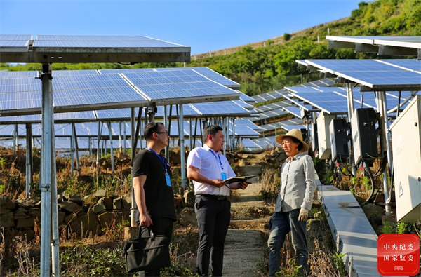 湖北省兴山县纪委监委紧盯群众急难愁盼问题,开展“下基层、察民情、解民忧、暖民心”实践活动。图为该县纪检监察干部在光伏电站了解光伏并网等政策落实情况。(湖北省兴山县纪委监委 万晶晶 摄)