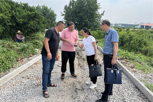 西陵区纪委监委立足职能职责,聚焦乡村振兴重点领域、重点环节,通过实地走访谈话、查阅档案资料、实地查看项目等方式,对基础设施项目建设重点人员、工程招投标、资金拨付等关键环节和重要岗位进行“贴身”监督,确保工程优质、干部廉洁。图为该区纪检监察干部对黑虎山生态公园道路建设情况进行实地走访调研。