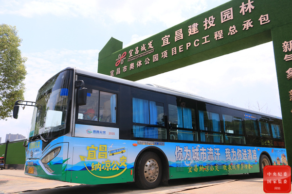 为应对持续高温天气,湖北省宜昌市在各重大项目施工地停驻“宜昌纳凉公交”,免费提供空调服务、纯净水和避暑药品,给夏日里的建设者送去一处清凉,关怀高温下的一线劳动者。(湖北省宜昌市纪委监委派驻市农业农村局纪检监察组供 刘建平 摄)