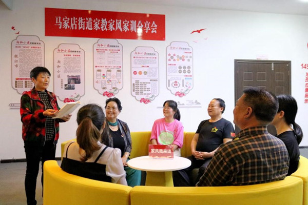 枝江市各级纪检监察机关通过“我来晒家训”“传承好家风”“好家风大家谈”等多种形式,向辖区党员干部群众送去廉政清风。图为该市马家店街道新和社区老党员为干部群众讲述老一辈革命家廉洁奉公的故事。