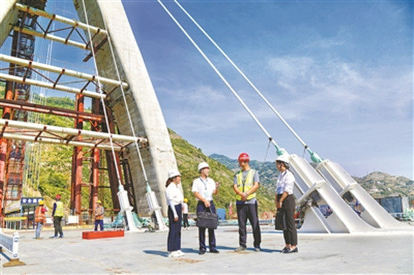 湖北省兴山县纪委监委紧盯项目建设关键环节,围绕履职尽责、干部作风等方面开展监督检查。图为该县纪检监察干部在香溪河大桥项目建设工地了解有关情况。万晶晶 摄