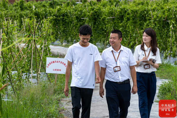 浙江省文成县纪委监委持续加强对惠农富农政策、涉农补助资金发放等落实情况的监督检查,严防截留挪用、雁过拔毛等微腐败,以强有力的监督推动完善基层治理,助力清廉村居建设。图为该县纪检监察干部在文成县某山药基地了解助农补贴发放情况。(浙江省文成县纪委监委 邢万方 摄)