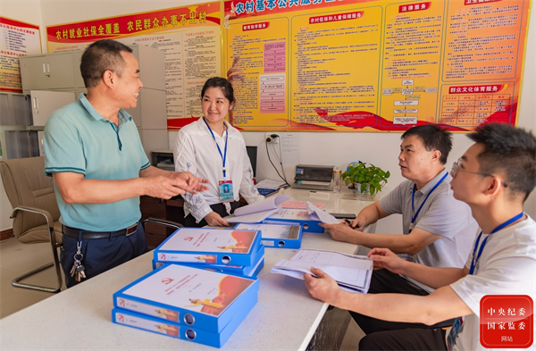 湖北省兴山县纪委监委坚持把精准监督向基层延伸、把规范权力运行向基层做实,县、乡、村三级联动打通基层监督“最后一公里”,推进清廉村居建设。图为监督检查组在南阳镇走访了解村级工程承揽相关情况。(湖北省兴山县纪委监委 万晶晶 摄)