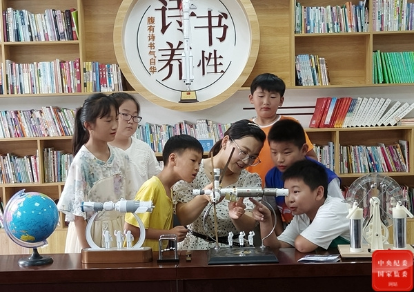 安徽省亳州市谯城区十八里镇十二里社区突出服务功能,设立服务窗口、便民微信群,开展志愿者服务,构建三公里就业圈,建设乡村复兴少年宫等,着力解决居民的急难愁盼问题。图为孩子们在该社区乡村复兴少年宫学习航空航天知识。(安徽省亳州市纪委监委 胡威 摄)