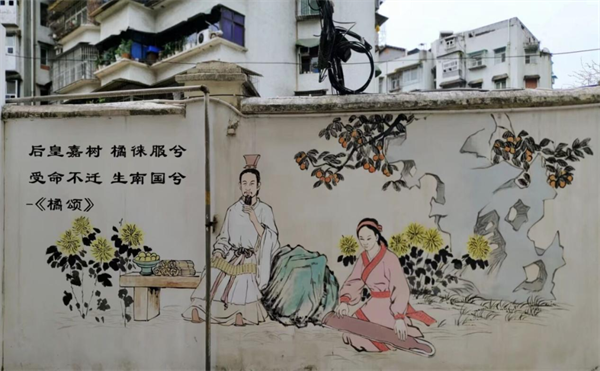 “后皇嘉树,橘徕服兮。受命不迁,生南国兮。”走进粮食小区首先映入眼帘的便是屈原廉洁文化墙,通过一幅幅生动的图画“忆屈原,润廉心”。来到家风馆,展墙上,一幅幅名人家规家训润物细无声,让人不禁驻足观赏。