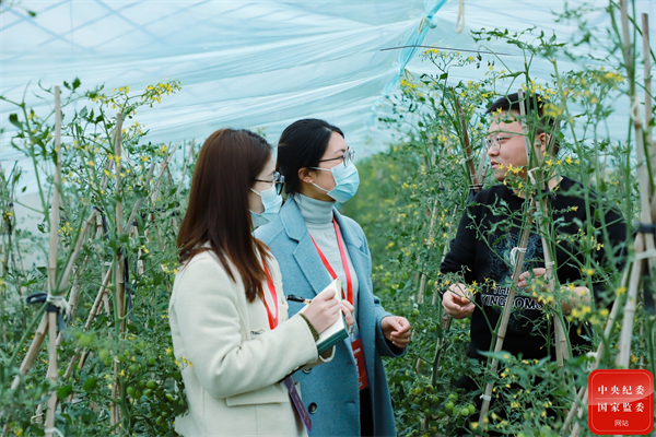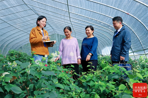 贵州省黔东南州榕江县纪委监委把产业发展监督作为强化政治监督的重要内容,坚持产业发展政策资金、项目在哪里,监督检查就跟进到哪里,精准查找乡村振兴领域的廉洁风险点。图为该县纪检监察干部向农户了解特色花卉产业政策扶持情况。(贵州省黔东南州榕江县纪委监委 杨若菲 摄)