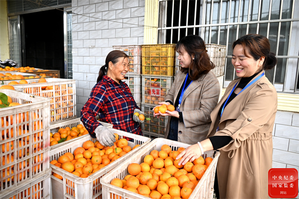 湖北省宜昌市夷陵区纪委监委紧盯当地柑橘等特色产业,通过走村入户、个别谈话等形式,面对面了解情况、倾听群众诉求,全力护航乡村振兴。图为该区纪检监察干部深入龙泉镇李家台村向村民了解惠民惠农政策落实情况。(湖北省宜昌市夷陵区纪委监委 李欣颖 摄)