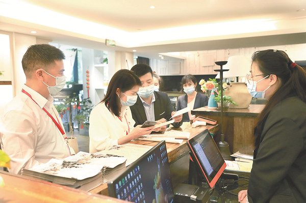 针对不吃公款吃老板、“一桌餐”等违规吃喝问题,浙江省遂昌县纪委监委通过在高档经营场所门口公开举报电话、会同职能部门抽查餐饮发票等方式,严查公职人员接受管理和服务对象宴请、参加“一桌餐”等违规违纪行为。图为该县纪检监察干部在一家高档餐厅了解情况。傅敏 摄