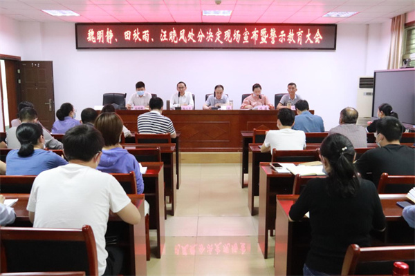 当阳市纪委监委在市发改局会议室召开警示教育大会,现场宣布粮食购销中心违纪干部处分决定