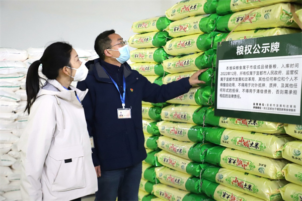 宜都市纪委监委坚持问题导向与目标导向相结合,开展问题线索大起底大排查,同时用好巡视巡察、“回头看”成果,持续加大粮食购销领域整治力度。图为该市纪检监察干部在当地粮食应急保供点了解有关情况。