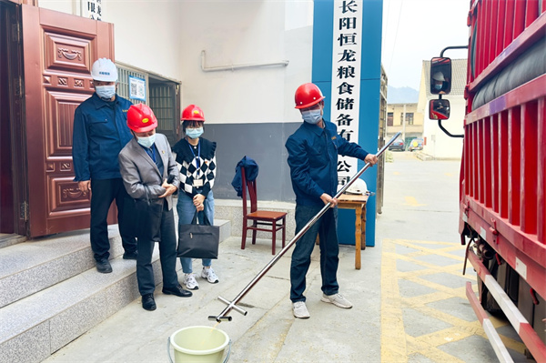 枝江市纪委监委聚焦“人、物、粮”重点要素和“购、销、储”等关键环节开展全链条监督,加大粮食购销领域惩贪治腐力度,对粮仓“硕鼠”露头就打。图为该市纪检监察干部在国家粮食储备中心实地核实有关问题线索。