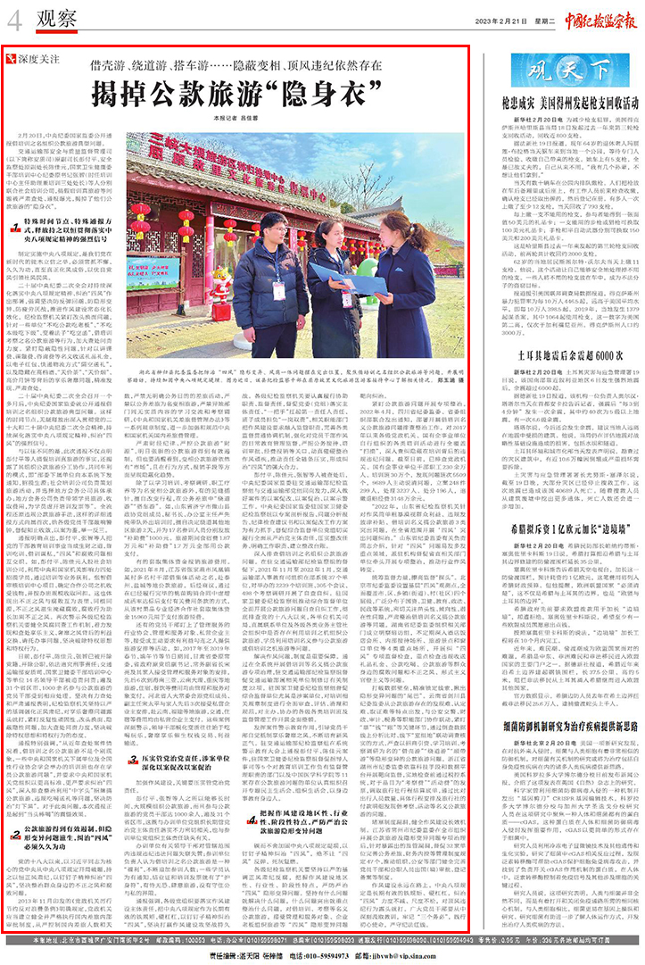 2月20日,中央纪委国家监委公开通报借培训之名组织公款旅游典型问题。