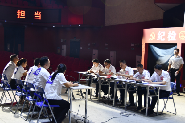 ▲湖南省溆浦县纪委监委举办沉浸式办案技能竞赛活动,从20个乡镇随机抽取20名选手组成4个核查组,参照真实办案流程模拟办案。图为模拟案件办结后,案件承办部门进行情况汇报。吴厚华 摄