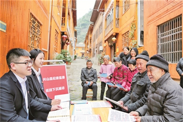 湖北省兴山县纪委监委组织专班到村(社区)屋场院子开展常态化接访,现场倾听群众诉求,把问题解决在群众“家门口”。图为近日,该县纪检监察干部在南阳镇白竹村接访。万晶晶 摄