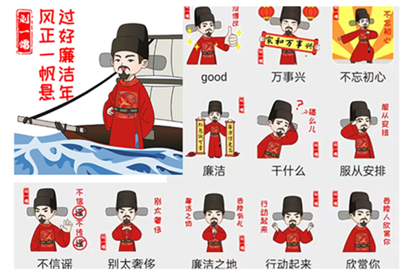 最近,一款以明朝廉吏刘一儒形象为主题的微信表情包,火遍了宜昌城区党员干部和公职人员的朋友圈。“谢谢哒”“点个赞”“搞么儿”“无交果”等融入日常交流的方言用语,与“吃请不约”“两袖清风”“警钟长鸣”类廉洁纪语相映成趣。