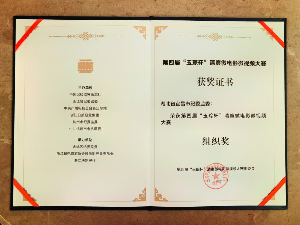 3月29日,“奋进新征程 廉心向未来”第四届“玉琮杯”清廉微电影微视频大赛颁奖活动在杭州市职工文化中心举行。 宜昌市纪委监委荣获大赛“最佳组织奖”,由宜昌市伍家岗区纪委监委选送的清廉微视频《棋局人生 勿忘初心》从众多参赛作品中脱颖而出获奖。