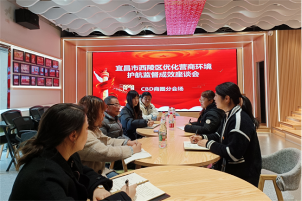 图为该市西陵区纪检监察干部现场收集CBD商圈企业家代表意见建议