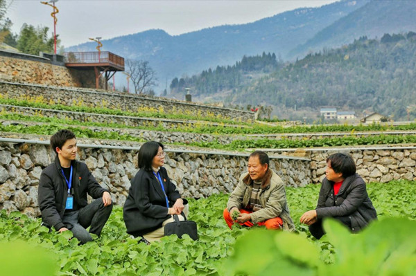 图为该县纪检监察干部在古夫镇走访群众了解难点堵点问题