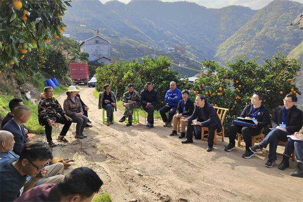图为该县泄滩乡棋盘岭村群众与回访的巡察干部交流村里的新变化