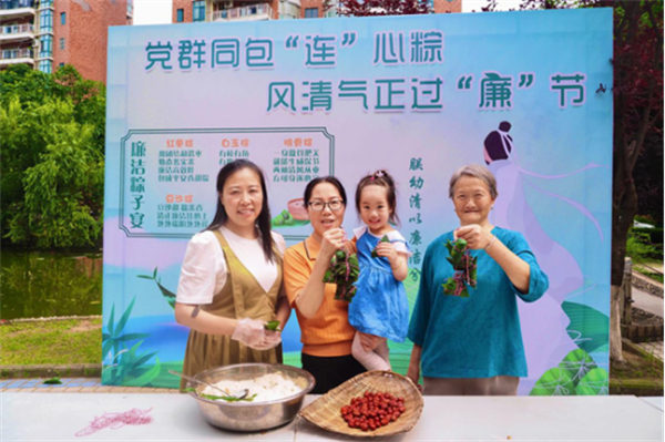 持续强化群众路线,全面激发廉洁文化生机活力,秭归县纪委监委紧贴群众、依靠群众、扎根群众,丰富清廉文化传播力,通过非遗手工刺绣、包“廉”粽、佩香囊等丰富多彩的民俗文化传承清廉记忆,使廉洁文化更接地气、更润人心。图为该县茅坪镇纪委在长宁社区开展“党群同包‘连’心粽 风清气正过‘廉’节”活动。(秭归县纪委监委)