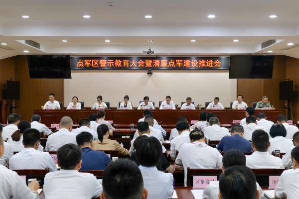 图为点军区召开警示教育大会,区委主要负责人讲授廉政党课。