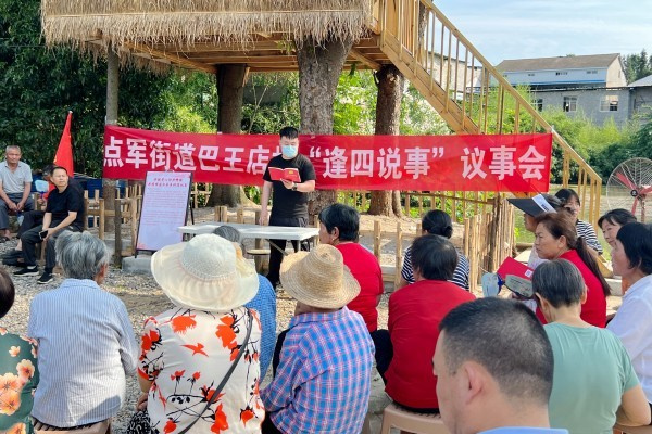 图为点军街道巴王店村“逢四说事”议事会现场,青年干部开展纪法宣讲。