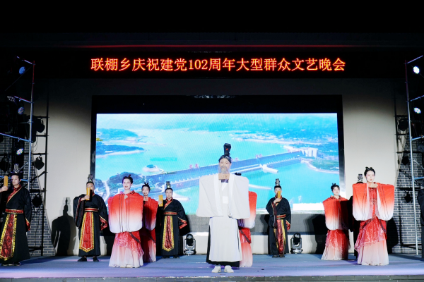 图为点军区联棚乡在群众文艺晚会中展演屈原主题歌舞。