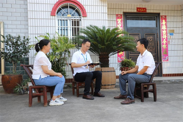 图为当阳市纪检监察干部为庙前镇沙河村党支部书记受到不实举报进行澄清正名