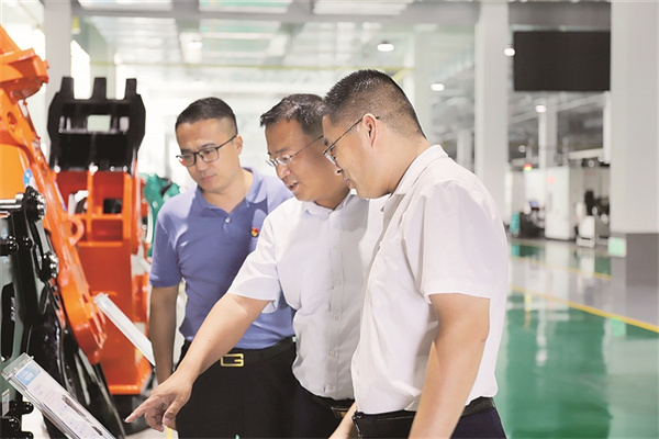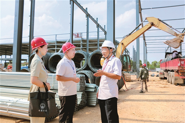 湖北省枝江市纪委监委开展“百名干部进百企”走访调研行动,深入重大项目建设一线靠前监督,推动各项惠企政策落实。图为近日,该市纪检监察干部在了解相关政策落实情况。任薇 摄