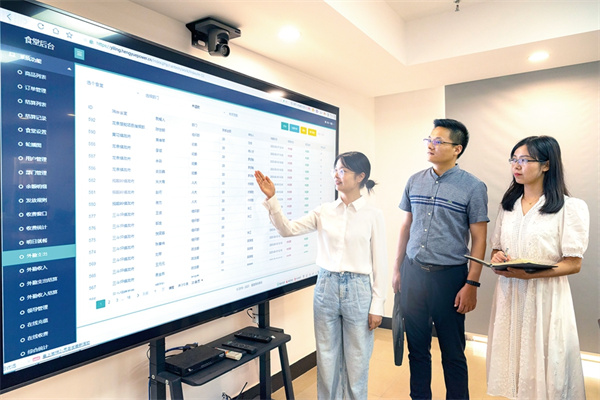 近日,湖北省宜昌市夷陵区纪检监察干部在“数字食堂”管理后台查看公务人员区内出差就餐情况。 聂爽 摄