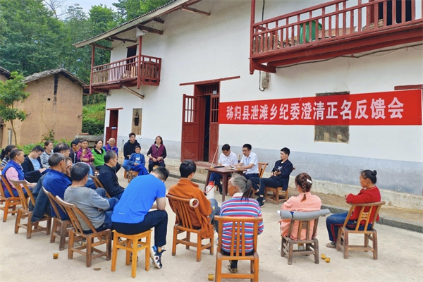 秭归县纪委监委常态化推进澄清正名工作,让受到不实举报的党员干部放下“包袱”轻装上阵,为担当者担当,激发干部干事创业热情。图为该县泄滩乡纪委在九条岭村召开澄清正名反馈会。