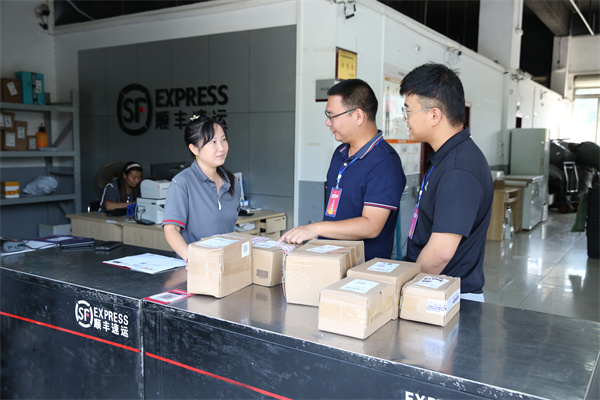 严防四风“新变异”。远安县纪委监委紧盯快递送礼等隐形变异“四风”问题,深入辖区快递网点查找问题线索,让“隔空”送礼无处遁形。图为该县专项监督小组在城区某快递网点了解相关情况。