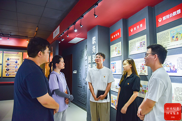 浙江省海宁市以廉洁课堂、警示活动、讨论沙龙等为载体,面向新入职、新提任、新转岗年轻干部开展“青廉”提升系列活动,铸造“青廉”铁军。图为年轻干部参观警示教育场馆后交流体会。(浙江省海宁市纪委监委 王磊 摄)