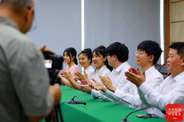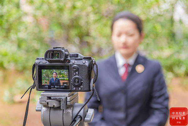 广西壮族自治区鹿寨县纪委监委紧盯干部任职、录用等关键节点,组织新任职干部开展廉政知识测试、拍摄廉洁亲情寄语等活动,引导干部扣好廉洁履职“第一粒扣子”。图为新提拔年轻领导干部家属录制廉洁亲情寄语。(广西壮族自治区鹿寨县纪委监委 覃智锋 摄)