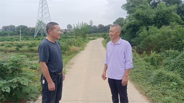 图为该区白洋镇滚钟坡村纪检委员李发荣(右一)了解有关情况